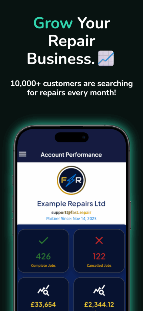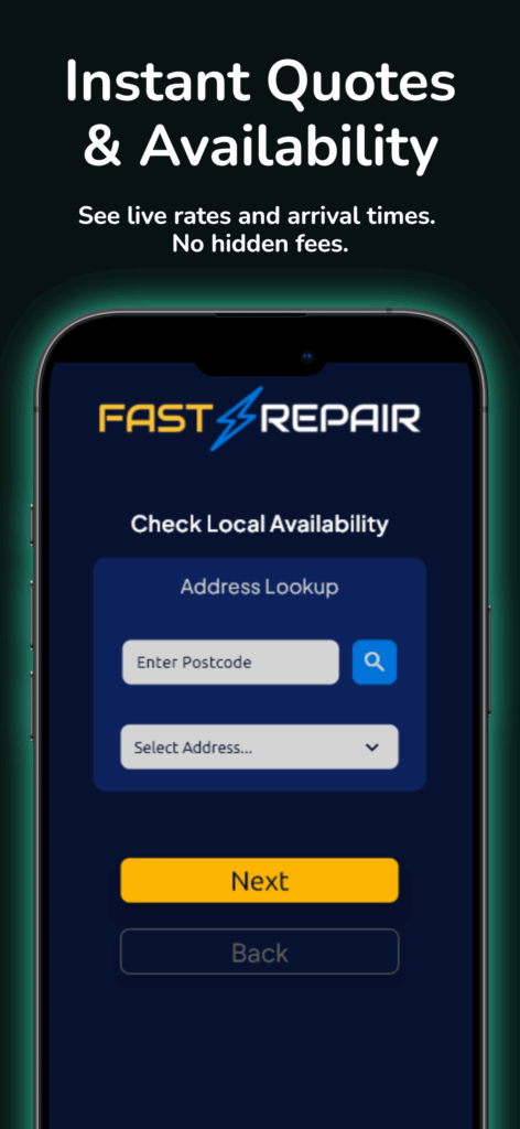Get instantly matched with a engineer in the area that can attend to your repair the fastest. Our system receives real-time availability updates from UK plumbers and engineers through our mobile apps ensuring the fastest response times.